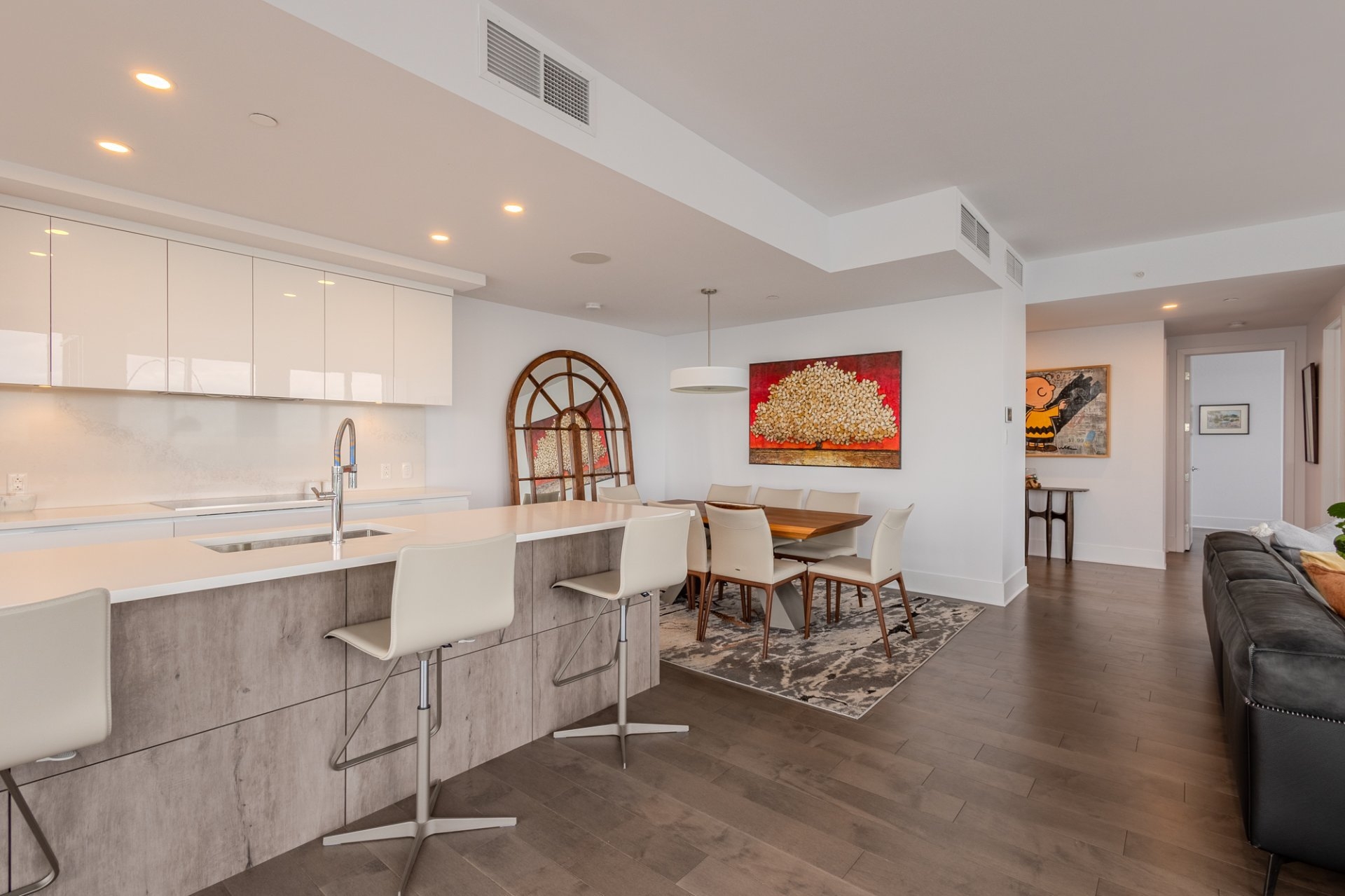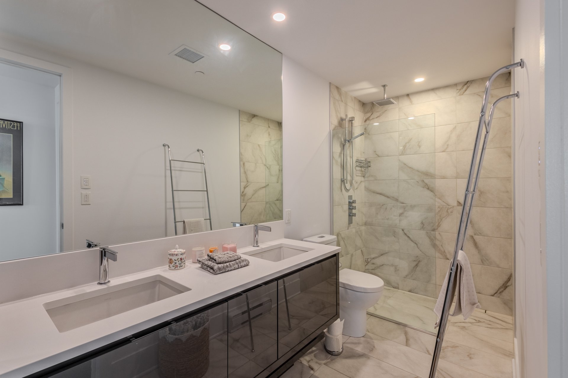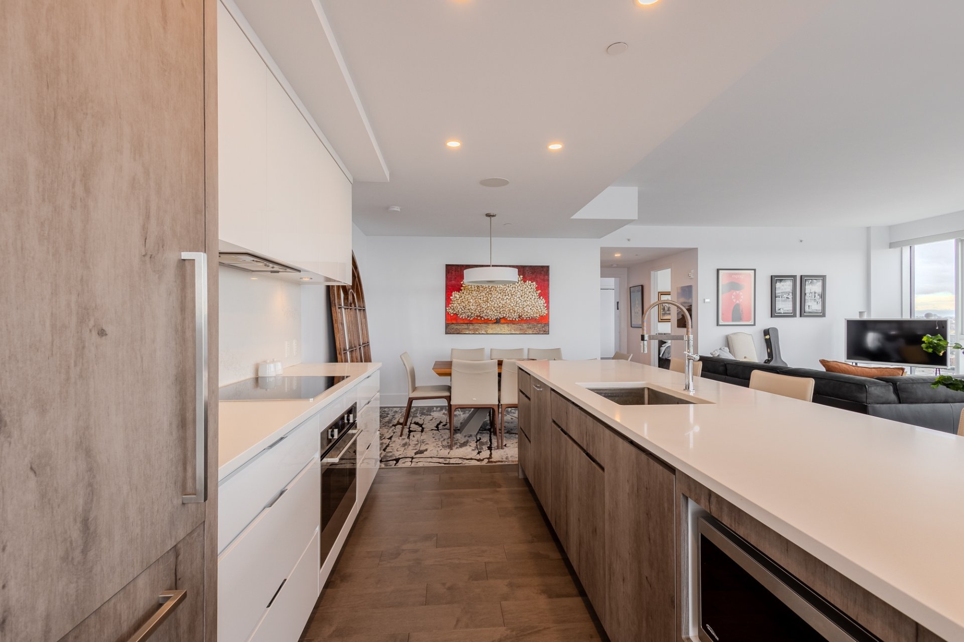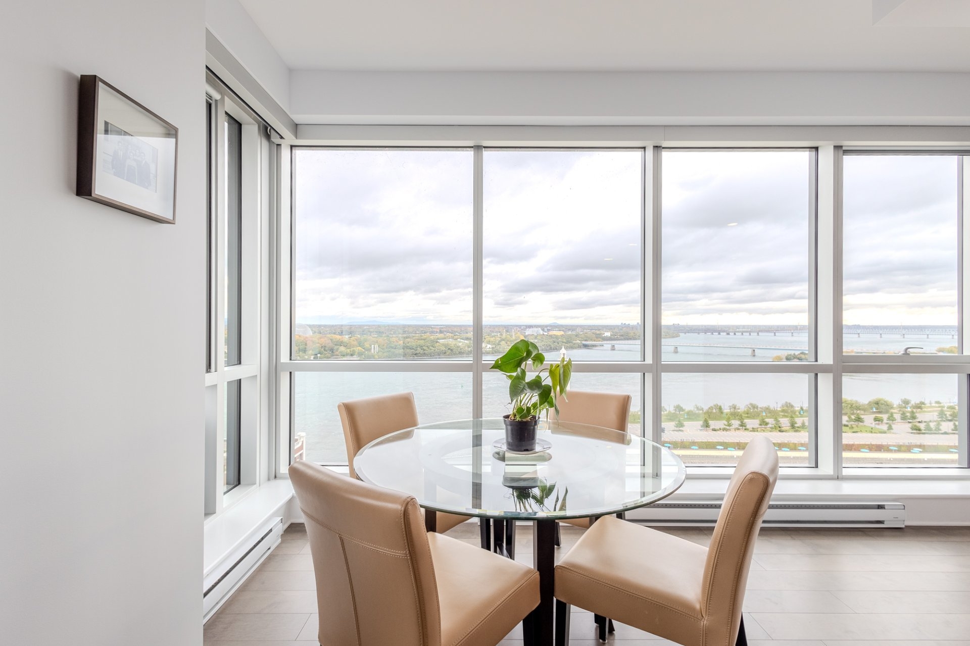 Welcome to the Suite 1701! This luxurious cornor unit is located on the 17th floor, offering 1622 square feet of luxurious living space. The unit features 3 bedrooms and 2 bathrooms, making it ideal for both families and individuals seeking premium living. Fully Furnished: This unit is being rented fully furnished, equipped with high-end appliances and exquisite furniture, providing a seamless move-in experience for the future tenant. Stunning Views: The unit boasts an unobstructed 180-degree view of the St-Laurent River and overlooks the iconic Quai de l'horloge in the Old Port of Montreal. The astonishing view can be enjoyed all day, creating an exceptional living environment. Natural Light: As a corner unit, it enjoys exceptional natural light throughout the day, providing a bright and airy ambiance in every room. Master Suite: The master bedroom features a spacious walk-in closet and a private ensuite bathroom for comfort and convenience. Prime Location: Situated in a peaceful area of the Old Port, the condo offers tranquility while being just a short walk from the lively center of the Old Port, with easy access to restaurants, shops, and entertainment. Parking and Storage: The condo includes one parking spot with an electric vehicle charging station, as well as a storage room in the second basement. There is potential to acquire a second parking spot if needed. Building Amenities: The building offers a range of luxurious amenities, including: Outdoor pool with an urban chalet located on the 8th floor. Indoor pool. Sauna. Spa. Yoga room. Fully equipped gym. Additional Features: The open-concept design enhances the spaciousness of the living areas, making it ideal for entertaining or relaxing. High-end finishes throughout the unit add to the overall luxury and sophistication. Control4 Home Automation Controls all music types including Spotify, apple and Amazon music Speakers in kitchen, livingroom , master bedroom and bathroom ,bass in living room Controls all blinds in condo. master bedroom, living room , dinnette area, office and spare bedroom Controls all lights in the condo, except inside closets Controls all heating and air conditioning in condo One app controls everything, even over the internet