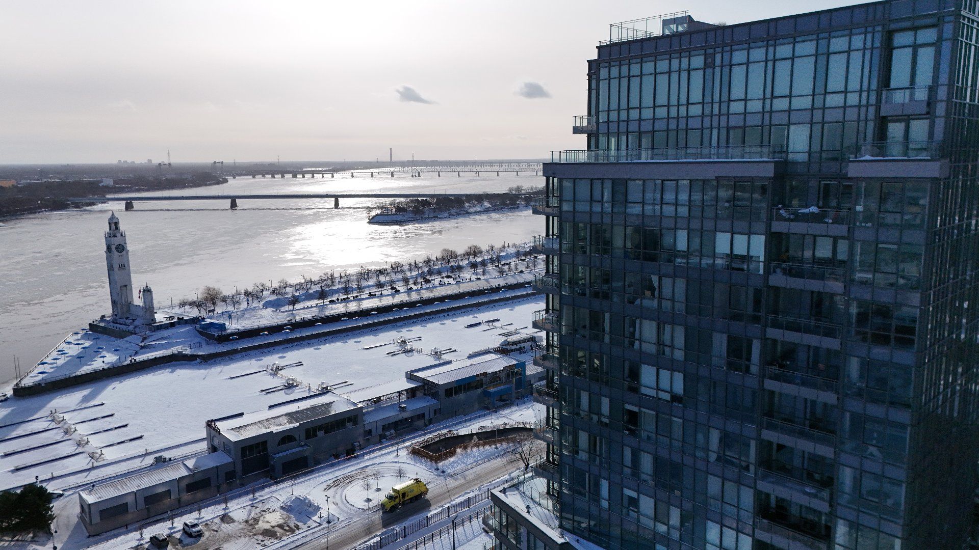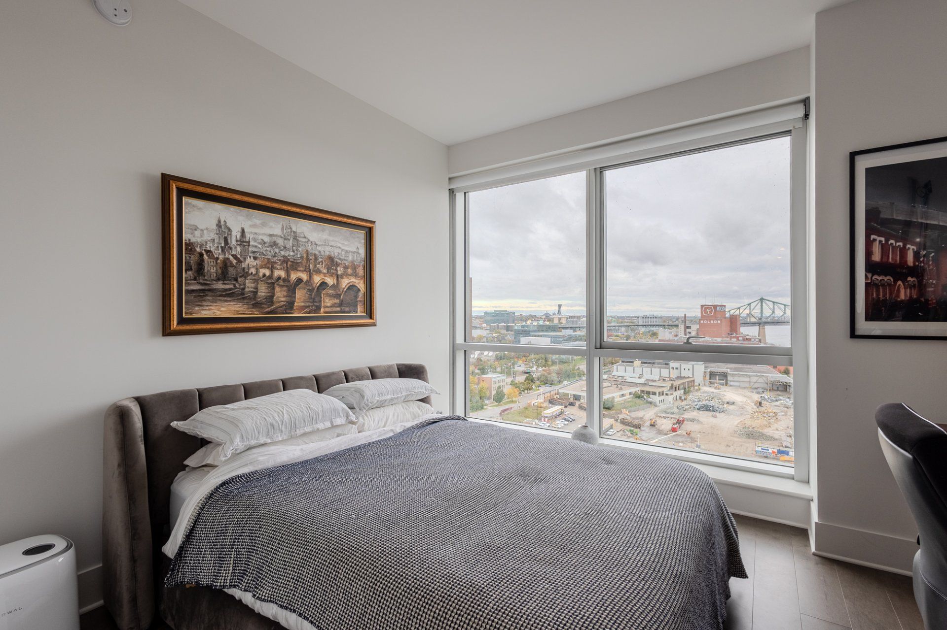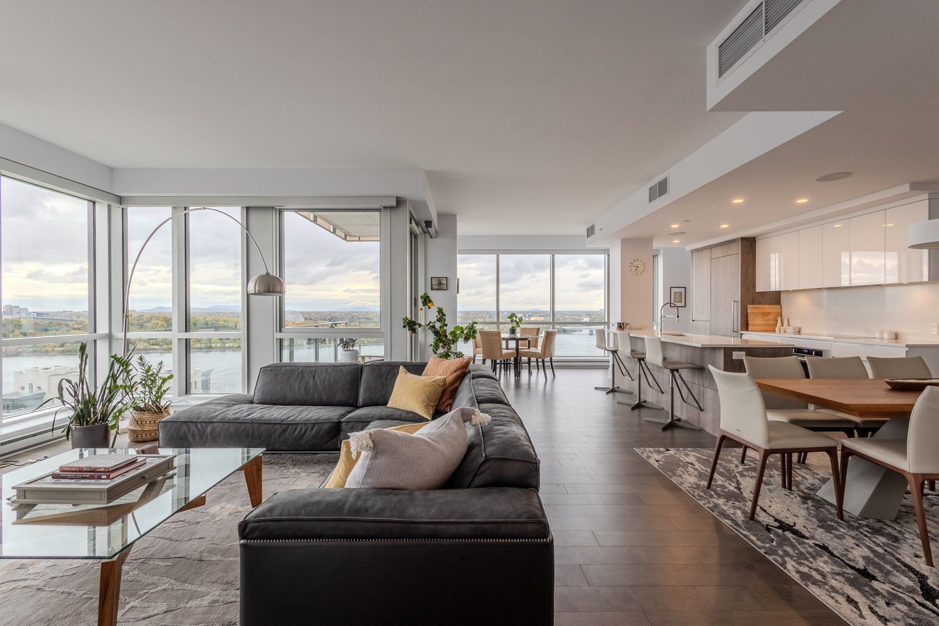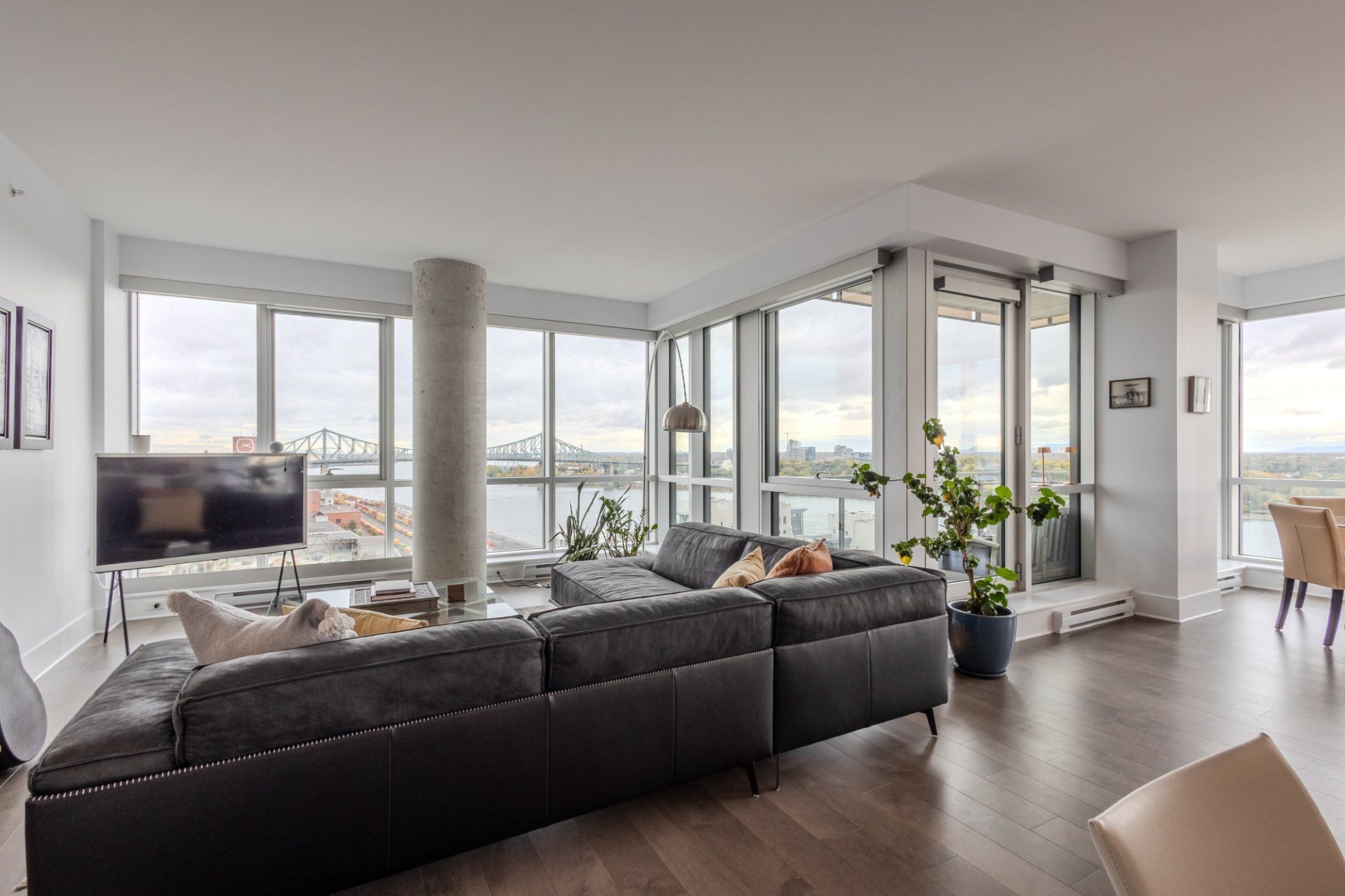 Welcome to the Suite 1701! This luxurious cornor unit is located on the 17th floor, offering 1622 square feet of luxurious living space. The unit features 3 bedrooms and 2 bathrooms, making it ideal for both families and individuals seeking premium living. Fully Furnished: This unit is being rented fully furnished, equipped with high-end appliances and exquisite furniture, providing a seamless move-in experience for the future tenant. Stunning Views: The unit boasts an unobstructed 180-degree view of the St-Laurent River and overlooks the iconic Quai de l'horloge in the Old Port of Montreal. The astonishing view can be enjoyed all day, creating an exceptional living environment. Natural Light: As a corner unit, it enjoys exceptional natural light throughout the day, providing a bright and airy ambiance in every room. Master Suite: The master bedroom features a spacious walk-in closet and a private ensuite bathroom for comfort and convenience. Prime Location: Situated in a peaceful area of the Old Port, the condo offers tranquility while being just a short walk from the lively center of the Old Port, with easy access to restaurants, shops, and entertainment. Parking and Storage: The condo includes one parking spot with an electric vehicle charging station, as well as a storage room in the second basement. There is potential to acquire a second parking spot if needed. Building Amenities: The building offers a range of luxurious amenities, including: Outdoor pool with an urban chalet located on the 8th floor. Indoor pool. Sauna. Spa. Yoga room. Fully equipped gym. Additional Features: The open-concept design enhances the spaciousness of the living areas, making it ideal for entertaining or relaxing. High-end finishes throughout the unit add to the overall luxury and sophistication. Control4 Home Automation Controls all music types including Spotify, apple and Amazon music Speakers in kitchen, livingroom , master bedroom and bathroom ,bass in living room Controls all blinds in condo. master bedroom, living room , dinnette area, office and spare bedroom Controls all lights in the condo, except inside closets Controls all heating and air conditioning in condo One app controls everything, even over the internet