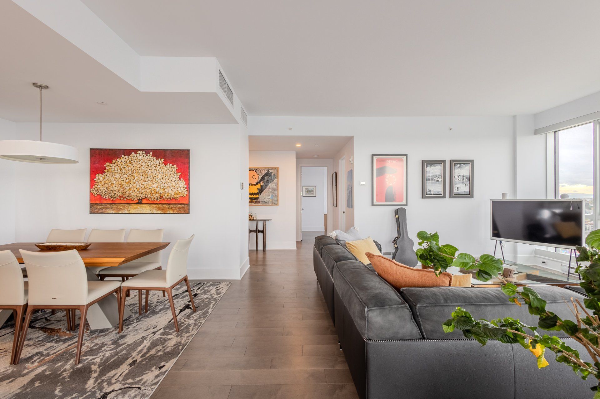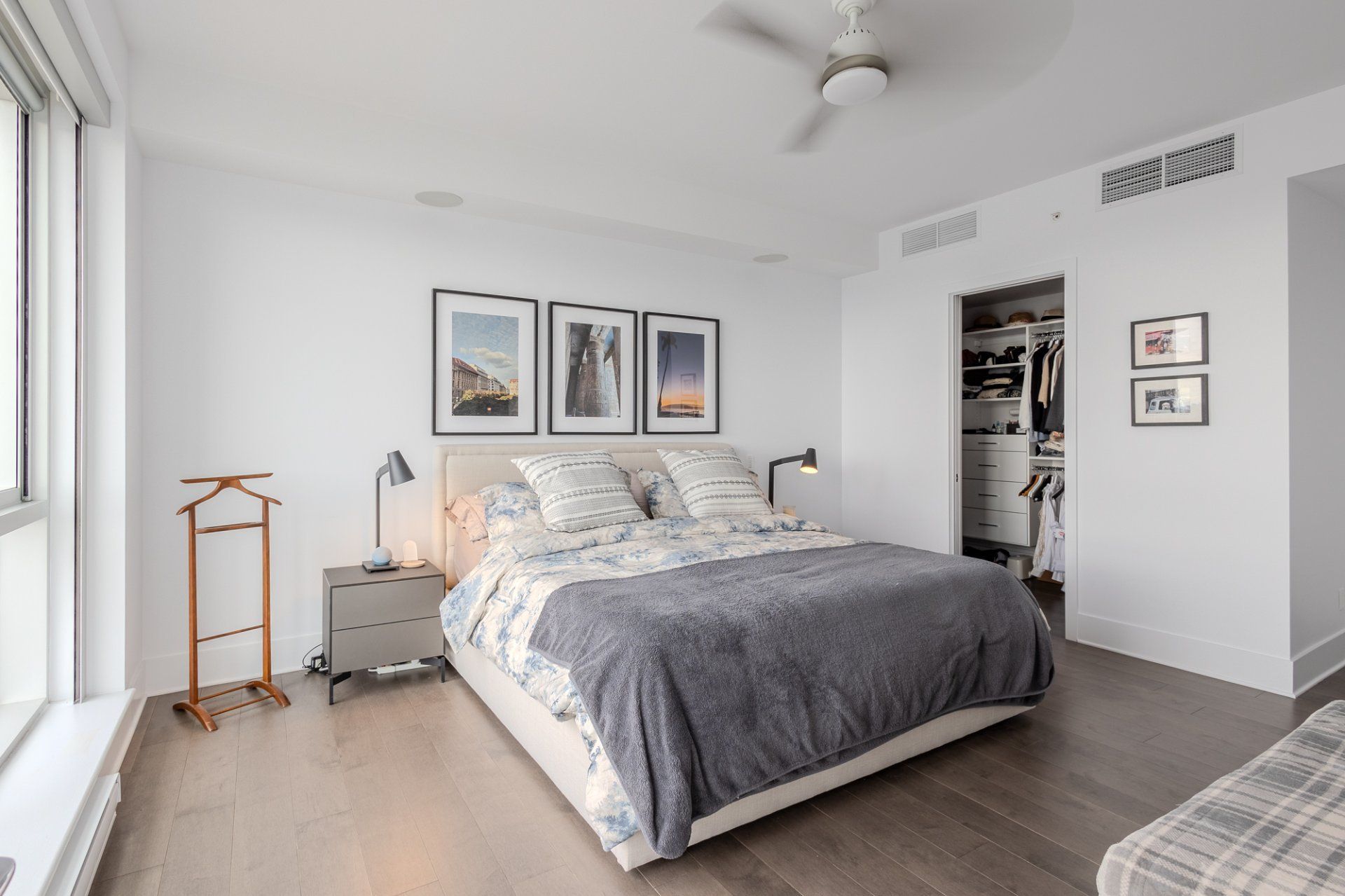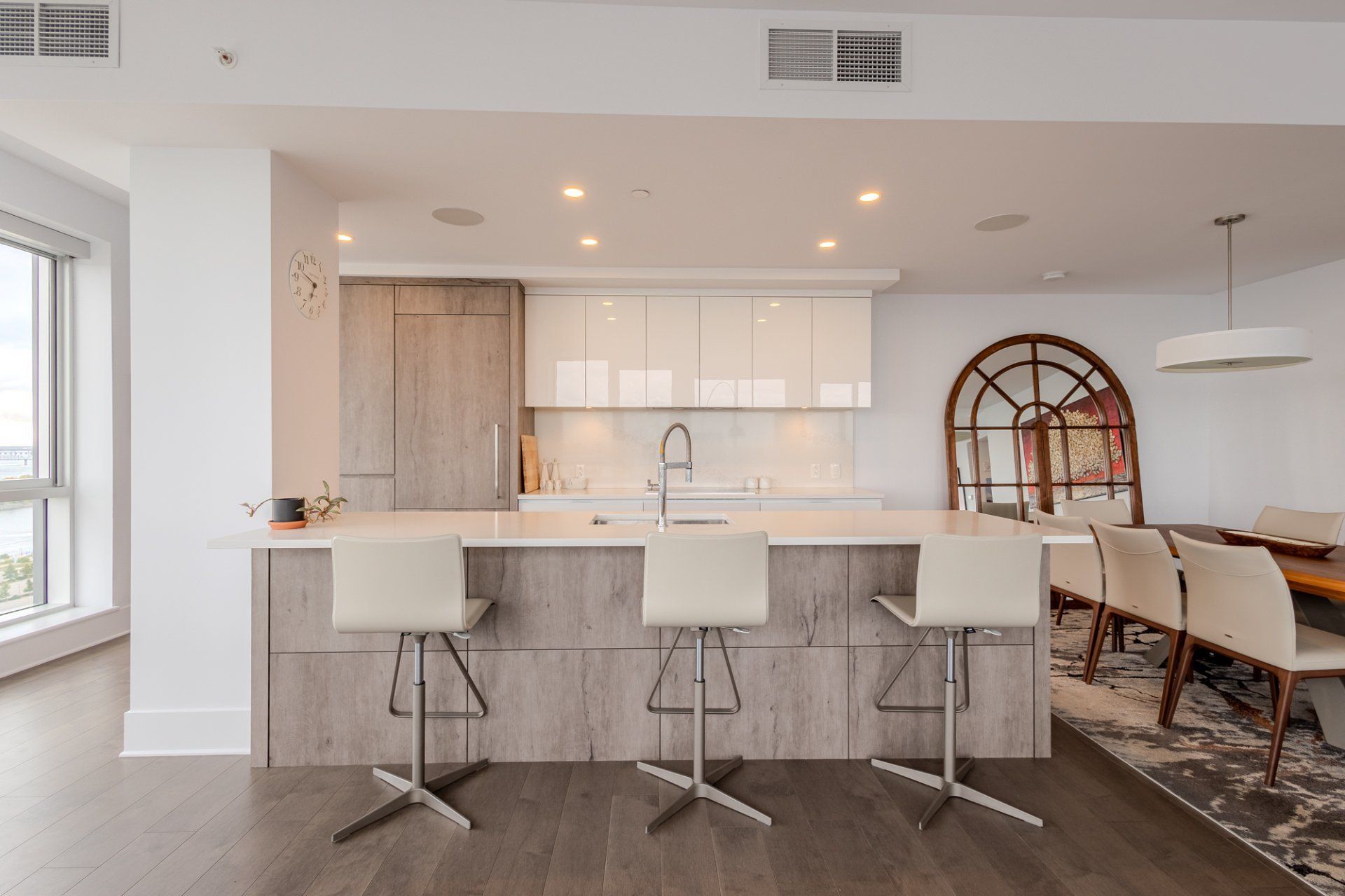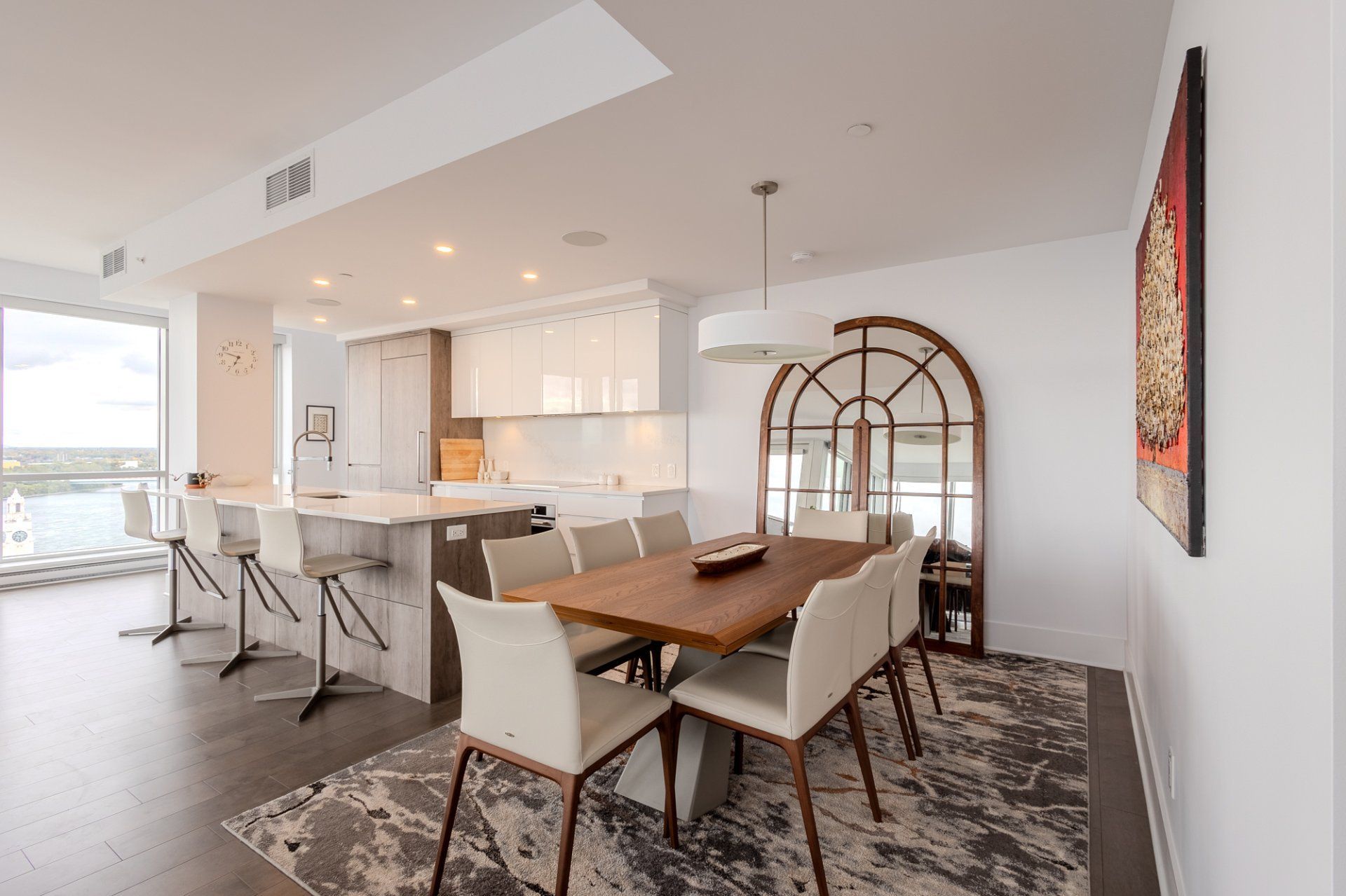 Welcome to the Suite 1701! This luxurious cornor unit is located on the 17th floor, offering 1622 square feet of luxurious living space. The unit features 3 bedrooms and 2 bathrooms, making it ideal for both families and individuals seeking premium living. Fully Furnished: This unit is being rented fully furnished, equipped with high-end appliances and exquisite furniture, providing a seamless move-in experience for the future tenant. Stunning Views: The unit boasts an unobstructed 180-degree view of the St-Laurent River and overlooks the iconic Quai de l'horloge in the Old Port of Montreal. The astonishing view can be enjoyed all day, creating an exceptional living environment. Natural Light: As a corner unit, it enjoys exceptional natural light throughout the day, providing a bright and airy ambiance in every room. Master Suite: The master bedroom features a spacious walk-in closet and a private ensuite bathroom for comfort and convenience. Prime Location: Situated in a peaceful area of the Old Port, the condo offers tranquility while being just a short walk from the lively center of the Old Port, with easy access to restaurants, shops, and entertainment. Parking and Storage: The condo includes one parking spot with an electric vehicle charging station, as well as a storage room in the second basement. There is potential to acquire a second parking spot if needed. Building Amenities: The building offers a range of luxurious amenities, including: Outdoor pool with an urban chalet located on the 8th floor. Indoor pool. Sauna. Spa. Yoga room. Fully equipped gym. Additional Features: The open-concept design enhances the spaciousness of the living areas, making it ideal for entertaining or relaxing. High-end finishes throughout the unit add to the overall luxury and sophistication. Control4 Home Automation Controls all music types including Spotify, apple and Amazon music Speakers in kitchen, livingroom , master bedroom and bathroom ,bass in living room Controls all blinds in condo. master bedroom, living room , dinnette area, office and spare bedroom Controls all lights in the condo, except inside closets Controls all heating and air conditioning in condo One app controls everything, even over the internet