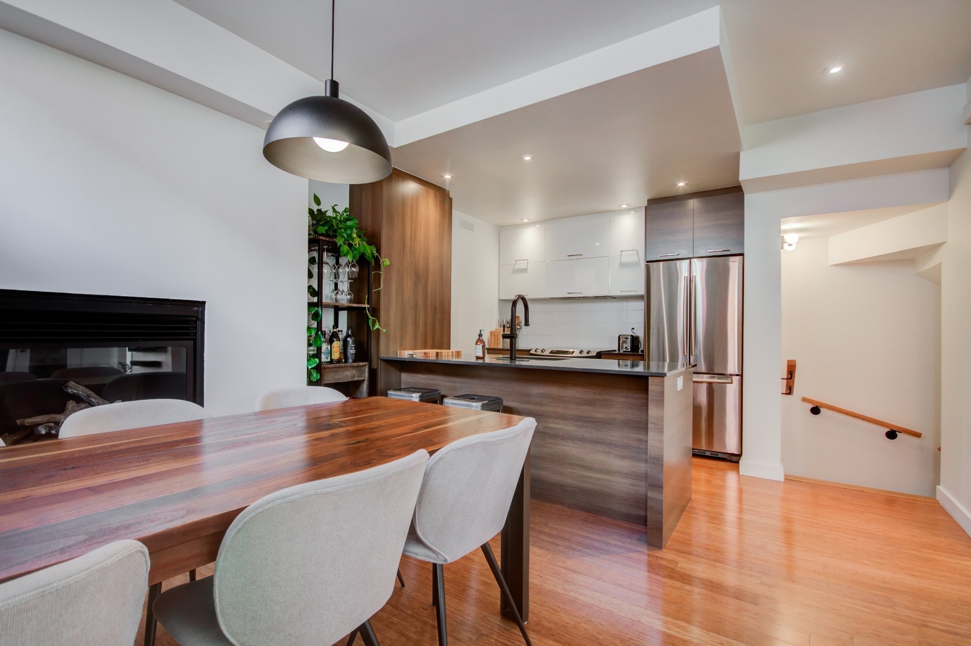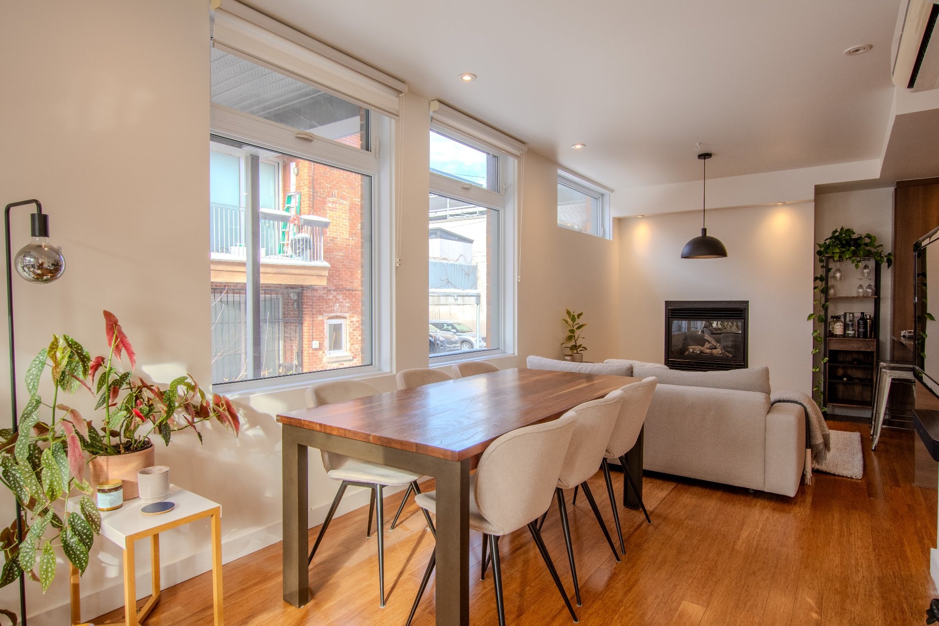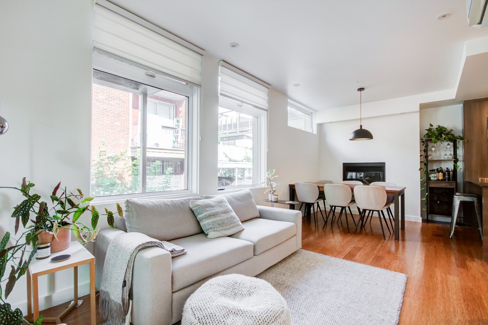 Located in the heart of vibrant Little Italy, this stunning modern divided condo offers an exceptional quality of life in one of Montréal's most sought-after neighborhoods. Spread across two levels and totaling 1,047 square feet, this rare property perfectly combines comfort, functionality, and an unbeatable location. From the moment you step inside, you'll be charmed by the open-concept main floor, flooded with natural light thanks to its corner position. Expansive windows illuminate the living spaces, creating a warm and inviting atmosphere at all times of the day. The spacious living room flows seamlessly into the dining area and contemporary kitchen, making it an ideal setting for entertaining, sharing family meals, or simply relaxing. The kitchen, sleek and functional, features quality finishes, clean lines, and a practical layout designed with food lovers in mind. A powder room completes this level, offering added convenience for you and your guests. The garden level houses two private bedrooms designed for peace and quiet. The primary bedroom is spacious and bright, a true retreat for rest and relaxation. The second bedroom is versatile and can be adapted as a child's room, office, or guest space, depending on your needs. A full modern bathroom with refined finishes is also located on this level, completing the private living spaces. This unit stands out not only for its contemporary design and thoughtful layout but also for its exceptional brightness, a feature that enhances every room and creates a home where it truly feels good to live. Beyond its interior, the location of this condo is a significant advantage. Little Italy is celebrated for its cultural energy and vibrant culinary scene. Within walking distance you'll find a wide variety of restaurants, cafés, boutiques, and services that make this neighborhood both dynamic and welcoming. The renowned Jean-Talon Market, a true landmark for fresh, local, and seasonal products, is only steps away. Schools, daycares, and parks are also nearby, making this an excellent choice for families as well as young professionals. Mobility is another major benefit: the metro and several bus lines are within walking distance, ensuring quick and easy access to downtown Montréal and surrounding neighborhoods. Whether you prefer walking, biking, or public transit, this address offers unmatched convenience. In summary, this two-bedroom, two-level corner unit is a rare opportunity to acquire a modern, bright, and well-maintained property in one of Montréal's most desirable neighborhoods. With its open spaces, quality finishes, abundant natural light, and unbeatable location, it's the perfect place to call home--whether as a primary residence or an investment.