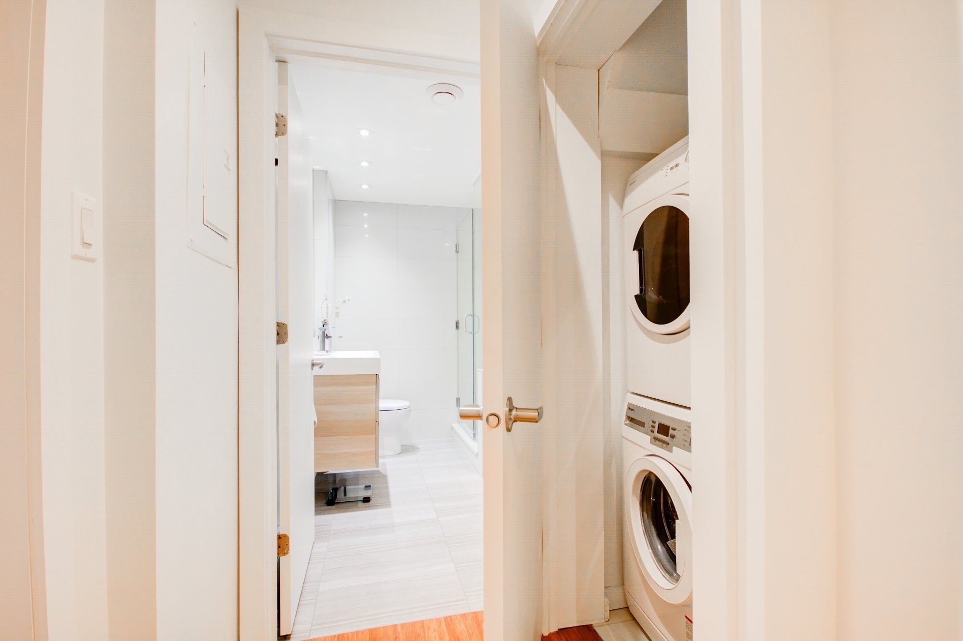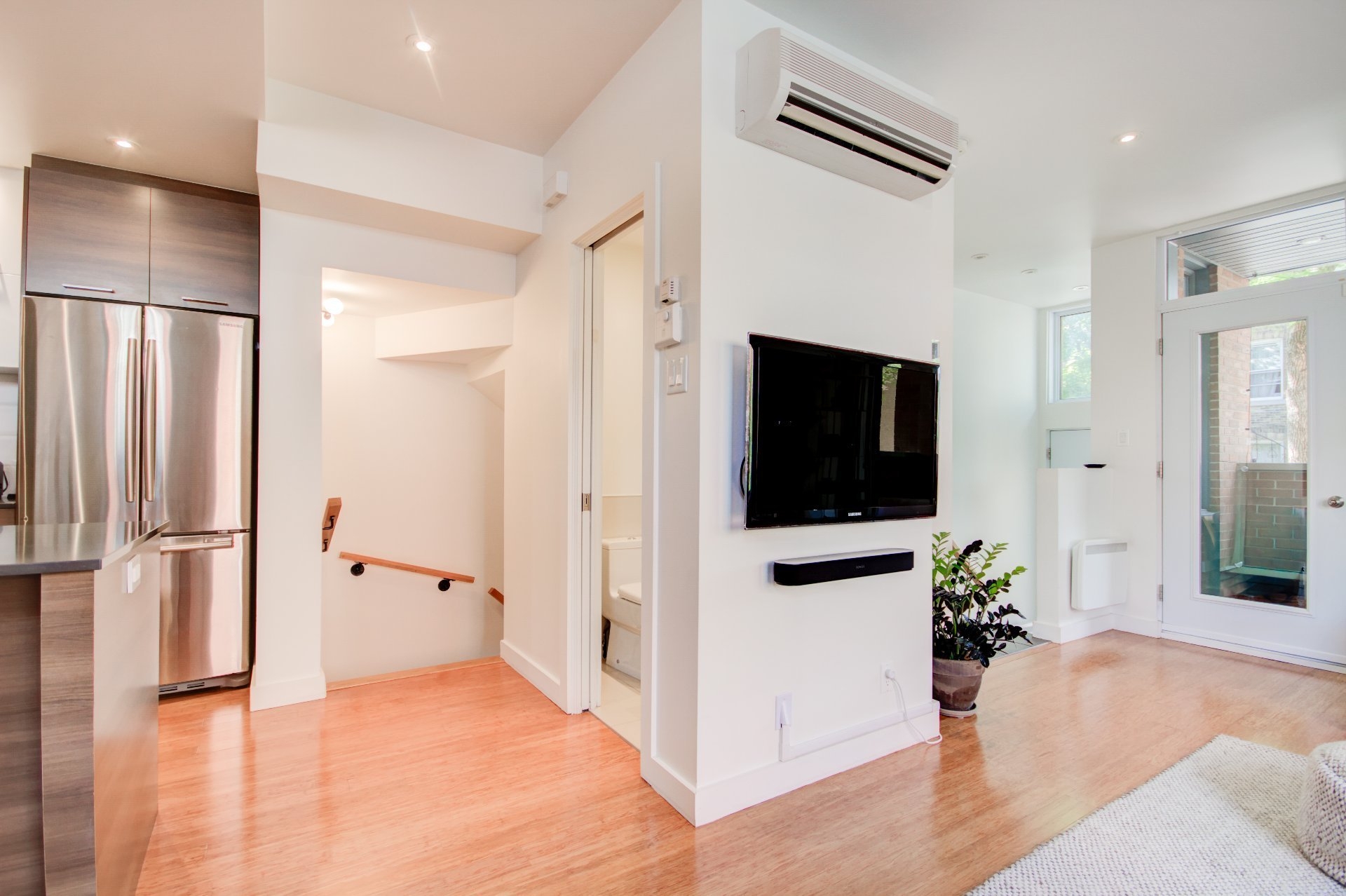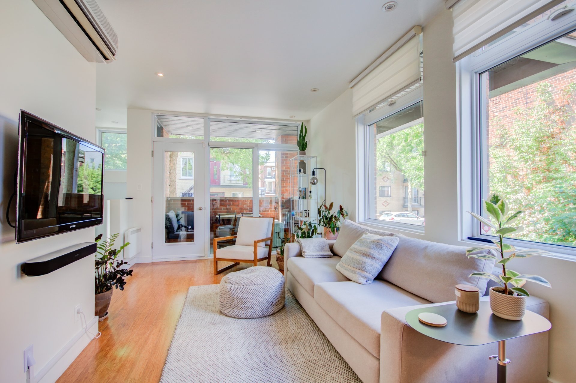 Located in the heart of vibrant Little Italy, this stunning modern divided condo offers an exceptional quality of life in one of Montréal's most sought-after neighborhoods. Spread across two levels and totaling 1,047 square feet, this rare property perfectly combines comfort, functionality, and an unbeatable location. From the moment you step inside, you'll be charmed by the open-concept main floor, flooded with natural light thanks to its corner position. Expansive windows illuminate the living spaces, creating a warm and inviting atmosphere at all times of the day. The spacious living room flows seamlessly into the dining area and contemporary kitchen, making it an ideal setting for entertaining, sharing family meals, or simply relaxing. The kitchen, sleek and functional, features quality finishes, clean lines, and a practical layout designed with food lovers in mind. A powder room completes this level, offering added convenience for you and your guests. The garden level houses two private bedrooms designed for peace and quiet. The primary bedroom is spacious and bright, a true retreat for rest and relaxation. The second bedroom is versatile and can be adapted as a child's room, office, or guest space, depending on your needs. A full modern bathroom with refined finishes is also located on this level, completing the private living spaces. This unit stands out not only for its contemporary design and thoughtful layout but also for its exceptional brightness, a feature that enhances every room and creates a home where it truly feels good to live. Beyond its interior, the location of this condo is a significant advantage. Little Italy is celebrated for its cultural energy and vibrant culinary scene. Within walking distance you'll find a wide variety of restaurants, cafés, boutiques, and services that make this neighborhood both dynamic and welcoming. The renowned Jean-Talon Market, a true landmark for fresh, local, and seasonal products, is only steps away. Schools, daycares, and parks are also nearby, making this an excellent choice for families as well as young professionals. Mobility is another major benefit: the metro and several bus lines are within walking distance, ensuring quick and easy access to downtown Montréal and surrounding neighborhoods. Whether you prefer walking, biking, or public transit, this address offers unmatched convenience. In summary, this two-bedroom, two-level corner unit is a rare opportunity to acquire a modern, bright, and well-maintained property in one of Montréal's most desirable neighborhoods. With its open spaces, quality finishes, abundant natural light, and unbeatable location, it's the perfect place to call home--whether as a primary residence or an investment.