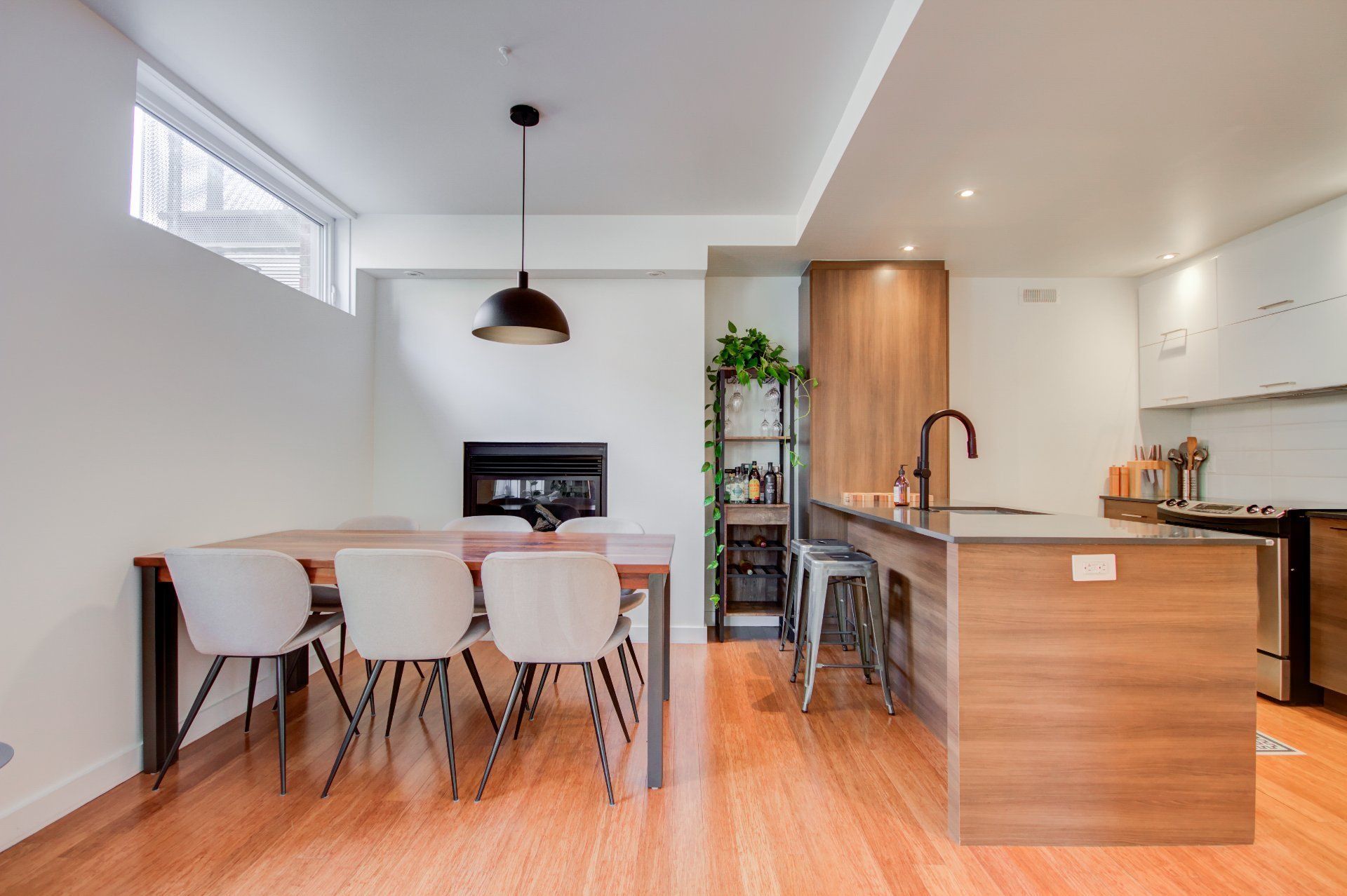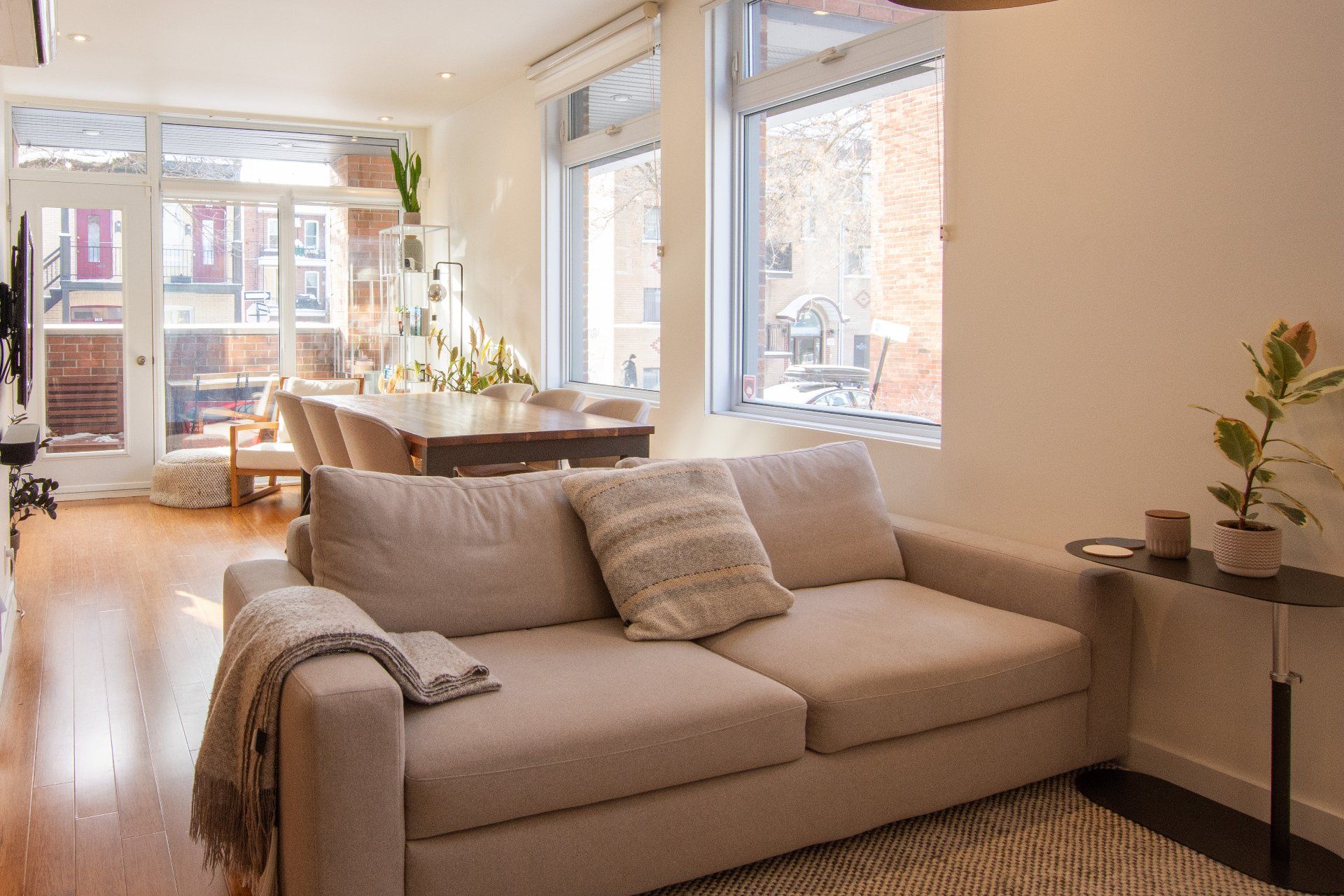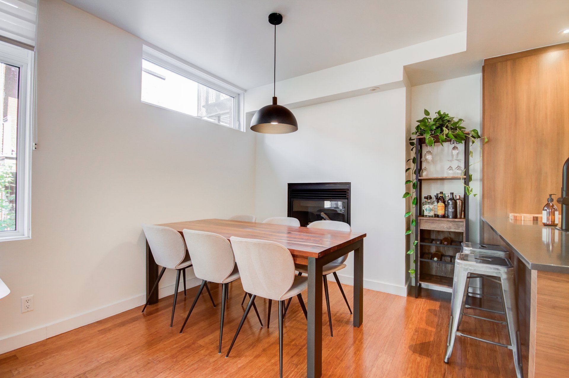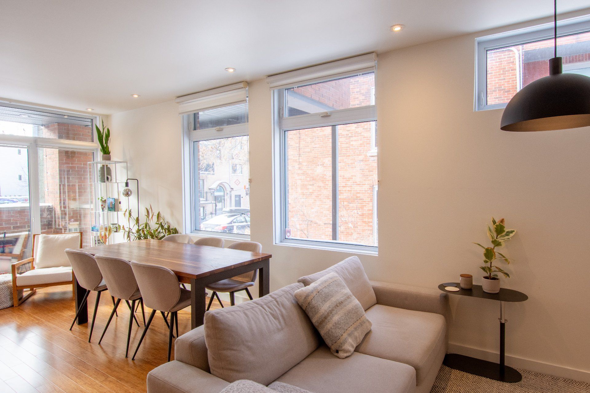 Located in the heart of vibrant Little Italy, this stunning modern divided condo offers an exceptional quality of life in one of Montréal's most sought-after neighborhoods. Spread across two levels and totaling 1,047 square feet, this rare property perfectly combines comfort, functionality, and an unbeatable location. From the moment you step inside, you'll be charmed by the open-concept main floor, flooded with natural light thanks to its corner position. Expansive windows illuminate the living spaces, creating a warm and inviting atmosphere at all times of the day. The spacious living room flows seamlessly into the dining area and contemporary kitchen, making it an ideal setting for entertaining, sharing family meals, or simply relaxing. The kitchen, sleek and functional, features quality finishes, clean lines, and a practical layout designed with food lovers in mind. A powder room completes this level, offering added convenience for you and your guests. The garden level houses two private bedrooms designed for peace and quiet. The primary bedroom is spacious and bright, a true retreat for rest and relaxation. The second bedroom is versatile and can be adapted as a child's room, office, or guest space, depending on your needs. A full modern bathroom with refined finishes is also located on this level, completing the private living spaces. This unit stands out not only for its contemporary design and thoughtful layout but also for its exceptional brightness, a feature that enhances every room and creates a home where it truly feels good to live. Beyond its interior, the location of this condo is a significant advantage. Little Italy is celebrated for its cultural energy and vibrant culinary scene. Within walking distance you'll find a wide variety of restaurants, cafés, boutiques, and services that make this neighborhood both dynamic and welcoming. The renowned Jean-Talon Market, a true landmark for fresh, local, and seasonal products, is only steps away. Schools, daycares, and parks are also nearby, making this an excellent choice for families as well as young professionals. Mobility is another major benefit: the metro and several bus lines are within walking distance, ensuring quick and easy access to downtown Montréal and surrounding neighborhoods. Whether you prefer walking, biking, or public transit, this address offers unmatched convenience. In summary, this two-bedroom, two-level corner unit is a rare opportunity to acquire a modern, bright, and well-maintained property in one of Montréal's most desirable neighborhoods. With its open spaces, quality finishes, abundant natural light, and unbeatable location, it's the perfect place to call home--whether as a primary residence or an investment.