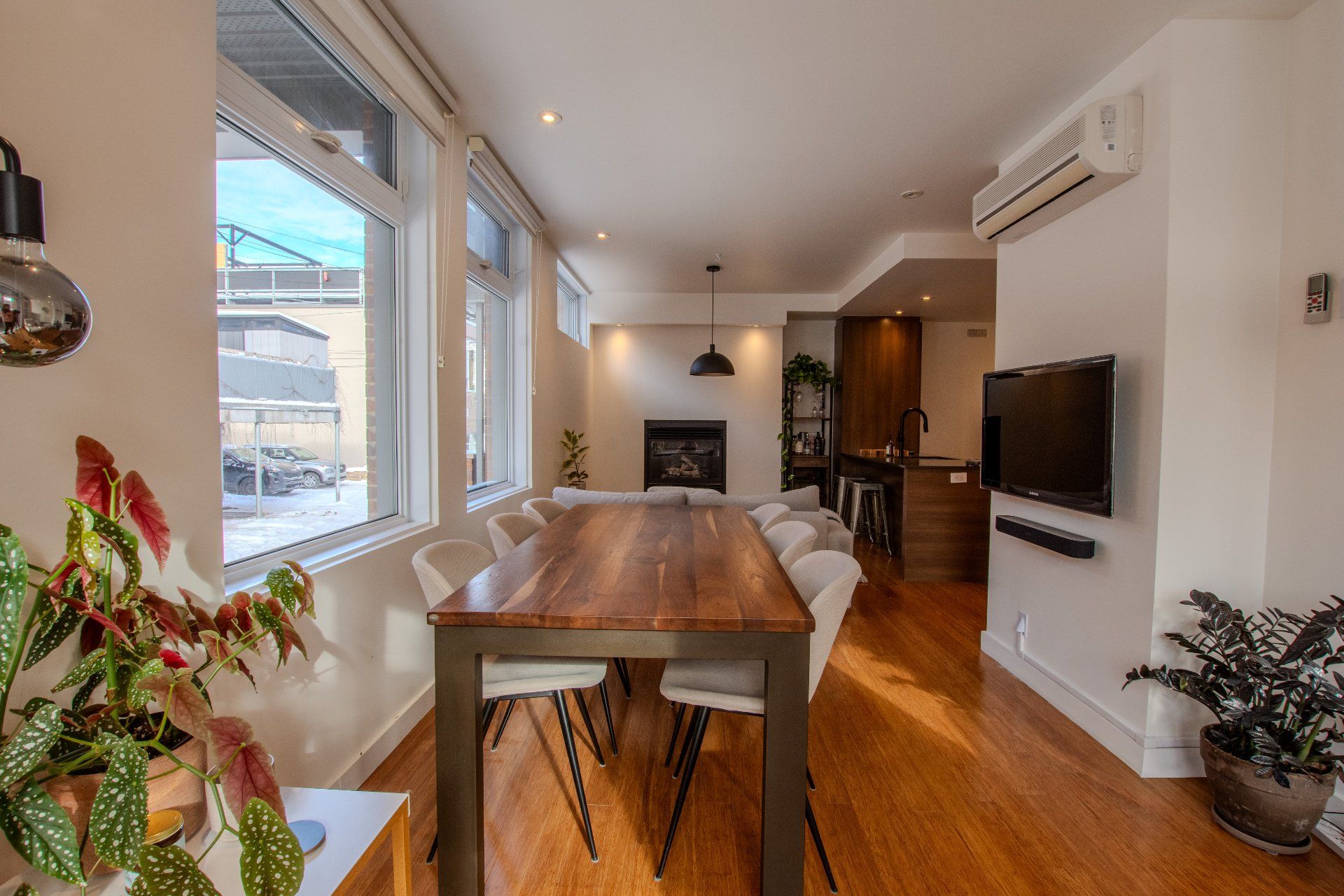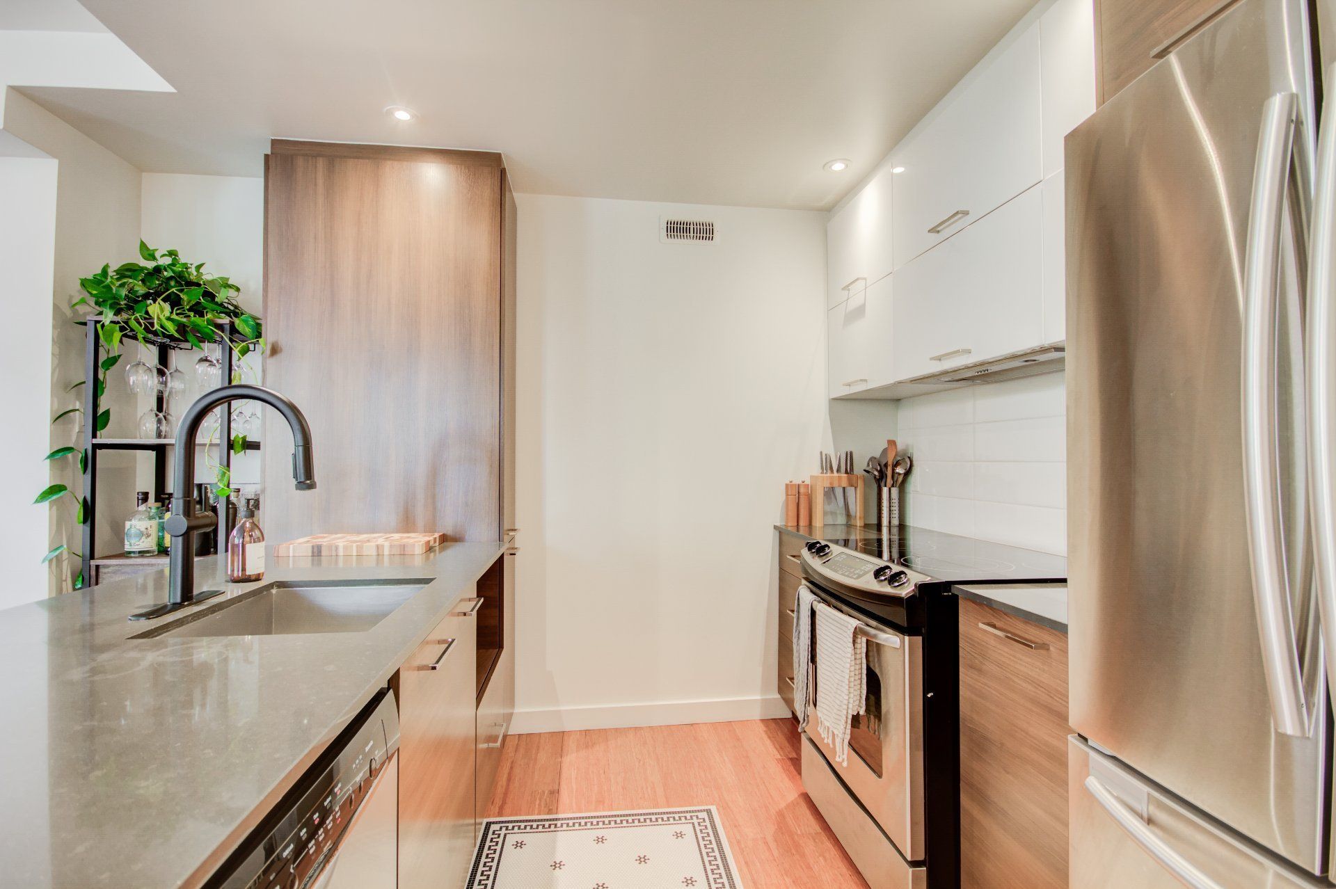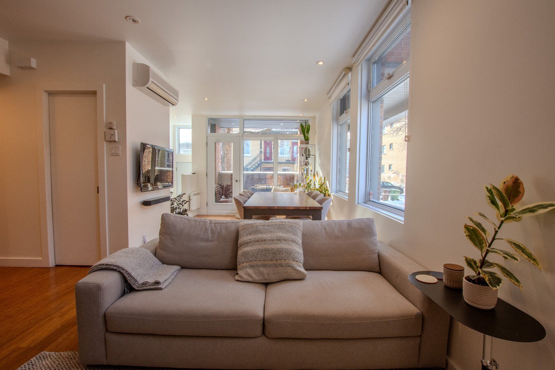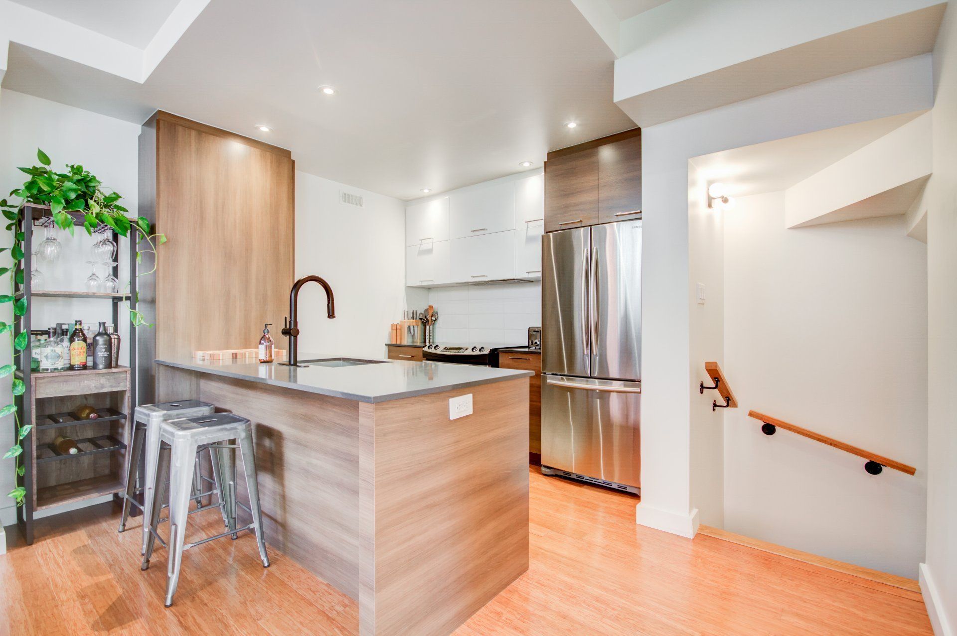 Located in the heart of vibrant Little Italy, this stunning modern divided condo offers an exceptional quality of life in one of Montréal's most sought-after neighborhoods. Spread across two levels and totaling 1,047 square feet, this rare property perfectly combines comfort, functionality, and an unbeatable location. From the moment you step inside, you'll be charmed by the open-concept main floor, flooded with natural light thanks to its corner position. Expansive windows illuminate the living spaces, creating a warm and inviting atmosphere at all times of the day. The spacious living room flows seamlessly into the dining area and contemporary kitchen, making it an ideal setting for entertaining, sharing family meals, or simply relaxing. The kitchen, sleek and functional, features quality finishes, clean lines, and a practical layout designed with food lovers in mind. A powder room completes this level, offering added convenience for you and your guests. The garden level houses two private bedrooms designed for peace and quiet. The primary bedroom is spacious and bright, a true retreat for rest and relaxation. The second bedroom is versatile and can be adapted as a child's room, office, or guest space, depending on your needs. A full modern bathroom with refined finishes is also located on this level, completing the private living spaces. This unit stands out not only for its contemporary design and thoughtful layout but also for its exceptional brightness, a feature that enhances every room and creates a home where it truly feels good to live. Beyond its interior, the location of this condo is a significant advantage. Little Italy is celebrated for its cultural energy and vibrant culinary scene. Within walking distance you'll find a wide variety of restaurants, cafés, boutiques, and services that make this neighborhood both dynamic and welcoming. The renowned Jean-Talon Market, a true landmark for fresh, local, and seasonal products, is only steps away. Schools, daycares, and parks are also nearby, making this an excellent choice for families as well as young professionals. Mobility is another major benefit: the metro and several bus lines are within walking distance, ensuring quick and easy access to downtown Montréal and surrounding neighborhoods. Whether you prefer walking, biking, or public transit, this address offers unmatched convenience. In summary, this two-bedroom, two-level corner unit is a rare opportunity to acquire a modern, bright, and well-maintained property in one of Montréal's most desirable neighborhoods. With its open spaces, quality finishes, abundant natural light, and unbeatable location, it's the perfect place to call home--whether as a primary residence or an investment.